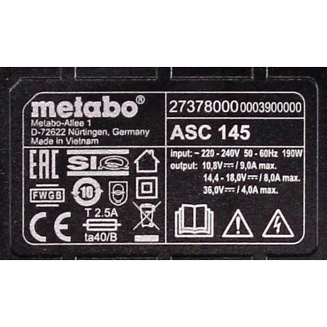 – 1x Metabo Chargeur ASC 145 (627378000)