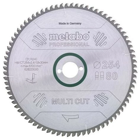 Boîtier de forage secondaire en feuilles de Ø 216, 250, 254 et plus de 300mm (sauf 628063000). Utilisation universelle dans les matériaux exigeants. Pour les exigences les plus élevées en matière de qualité de coupe, par exemple le stratifié, les profils en plastique à paroi fine, l’aluminium, le cuivre et le laiton. Idéal pour de nombreuses applications dans les travaux d’intérieur. La coupe parfaite se traduit même par des coupes croisées dans le bois massif, les plaques à puces brutes, revêtues ou plaquées, le MDF. Il a besoin d’une puissance élevée de la scie circulaire. Durée de vie particulièrement élevée grâce à la meilleure qualité de métal dur et aux dents finement redressées. Coupes précises, à faible bruit et à vibrations minimisées grâce aux rainures d’expansion découpées au laser (et aux ornements partiellement au laser) ainsi qu’aux lames principales découpées avec un laser en acier de haute qualité.