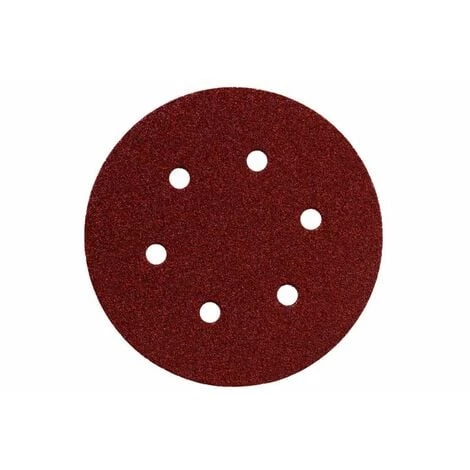 Lot de 25 disques de ponçage autoagrippants 150mm Metabo. Assortiment de différents grains : 10 x P 60, 10 x P 80, 5 x P 120 Adaptés au ponçage du bois, du métal et des couches de peinture. 6 trous