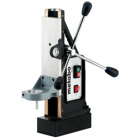 Pied magnétique avec une adhésion élevée pour un travail sûr. Lors de l’utilisation de la chaîne de sécurité fournie, également adaptée pour travailler sur les surfaces verticales et en pente et sur la tête. Réglage de la hauteur de la glissière à travers le pignon et le rack. La partie supérieure du support de forage magnétique peut être tournée et déplacée sur le côté. que la pointe de la perceuse utilisée dans la machine à forage est située au-dessus du marquage des grains attaché dans le matériau à ennuyer. Pobinet pour la machine à forage sur le support de forage. La perceuse ne peut être allumée qu’après l’activation du support de forage magnétique. Support pour compenser la puissance survenue pendant le forage. Anneau d’échelle pour l’affichage de profondeur de forage. Peut être complété par la machine de forage B 32/3 dans une unité de forage magnétique avec un diamètre max de 100 mm (avec un forage de trous de noyau).